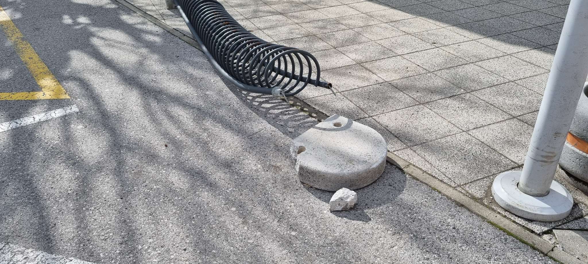 Kao što se vidi na slikama, polomljena je spirala za bicikle kod izvora Cesarovac, na mjestu pina kako je označeno na karti.