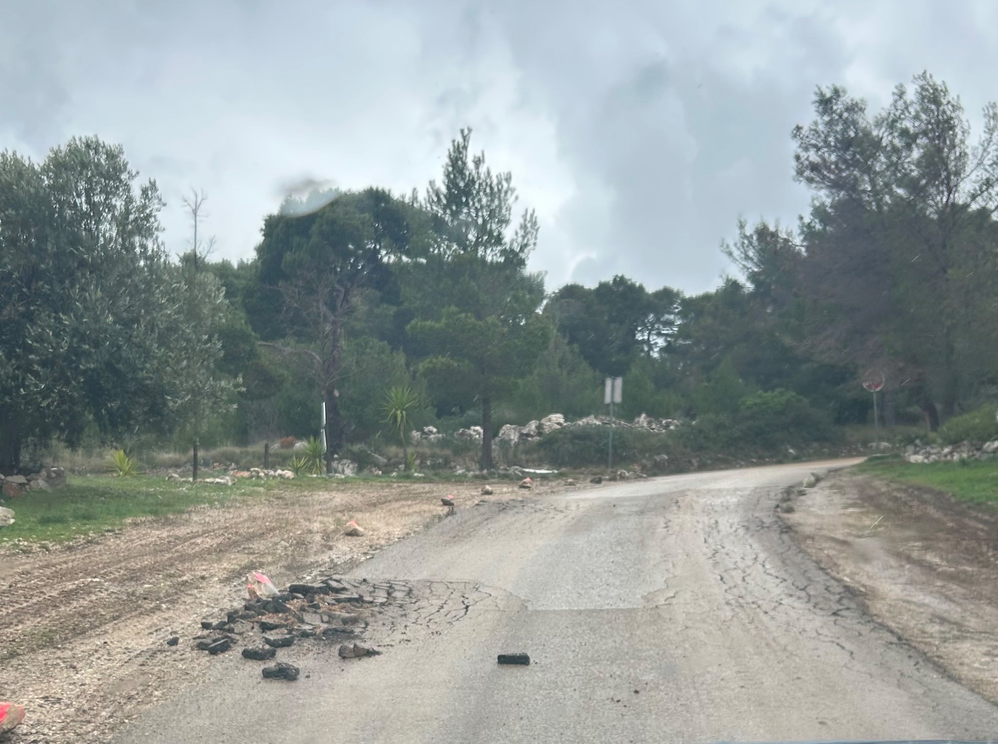 U niti deset dana doslo je velikog oštećenja kolnika uslijed prolaska kamiona s obližnjeg gradilišta. Molimo za zurnost jer se za par dana vise neće moći ni hodati cestom!!!!