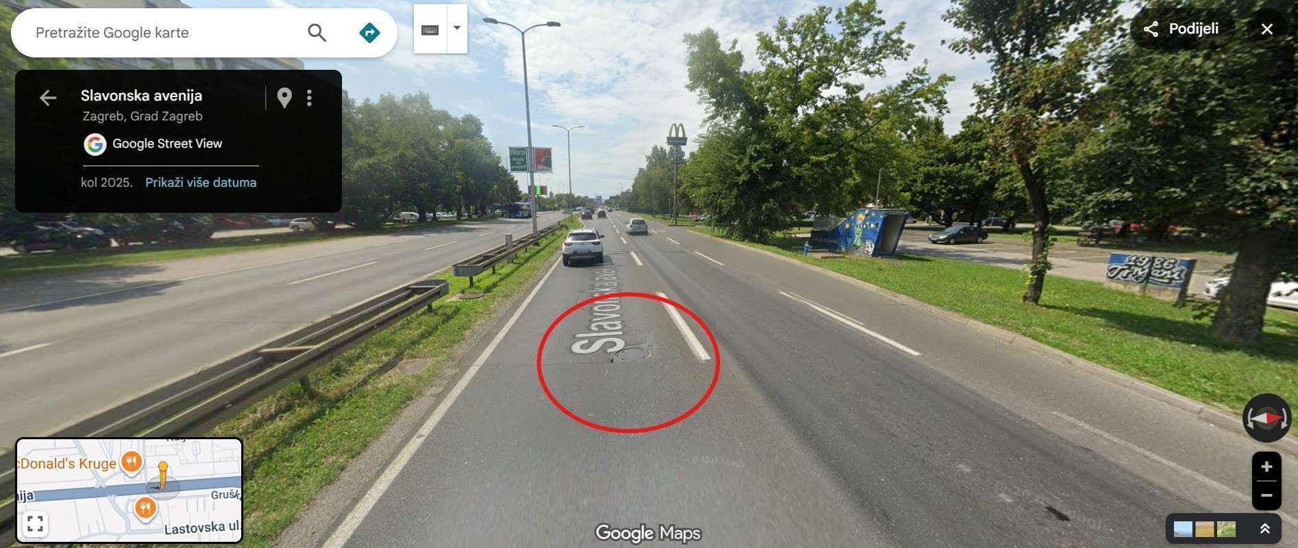 Slavonska Avenija, prije skretanja u Ulicu Cvijete Zuzorić, smjer istok-zapad